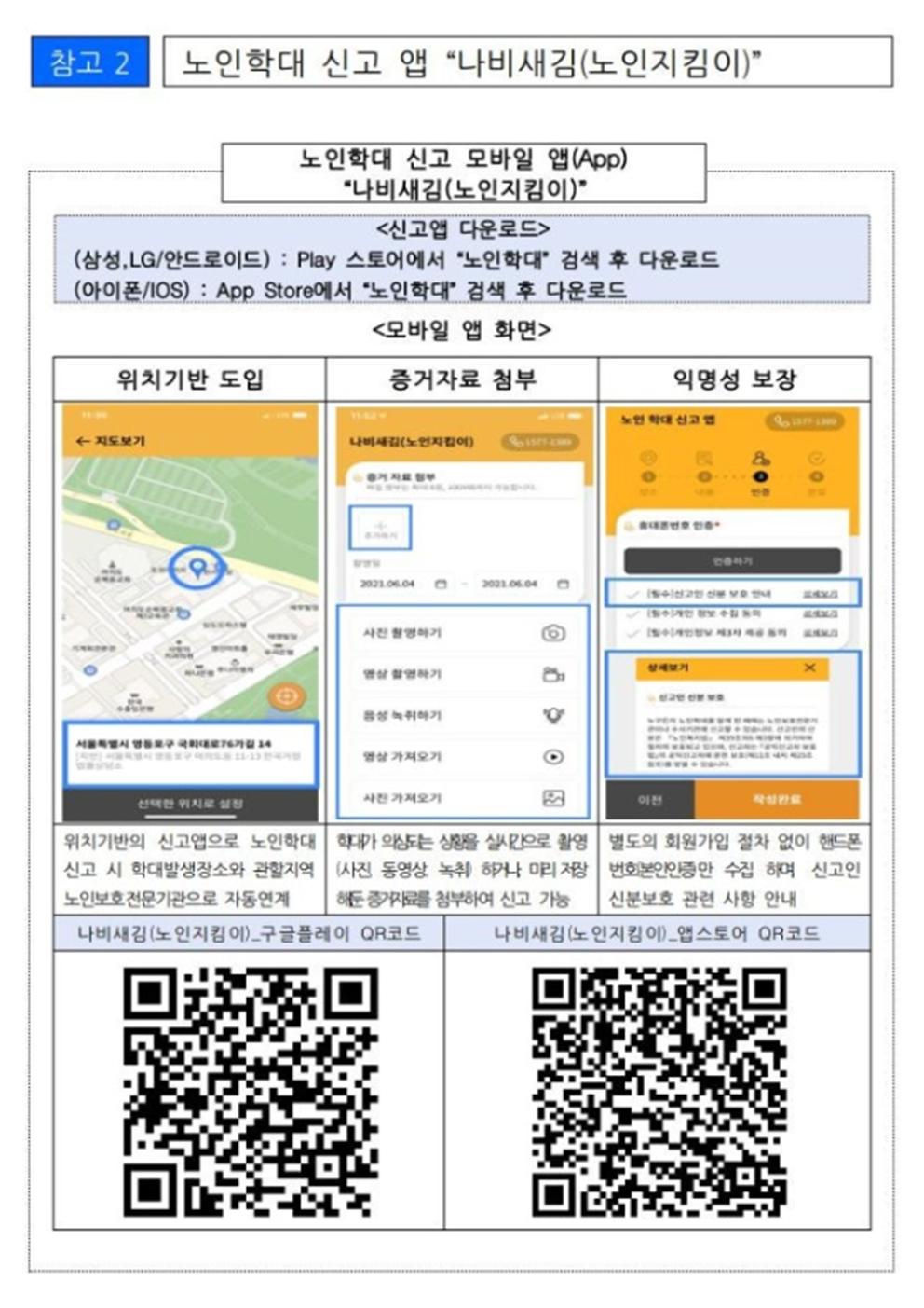 노인학대 신고앱 - 나비새김 설치 안내입니다.